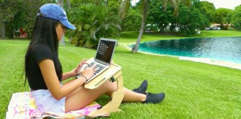 AdapDesk这款懒人桌,比普通版高级得多,使用者可以站、可以坐、还能躺着玩儿~~~