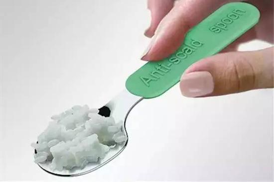 这个创意产品是一个汤勺,不过这可不是一个普通的汤勺,这是一个为儿童设计的安全汤勺。