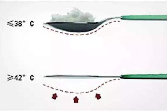 当妈妈盛的饭菜温度超过42℃时就会变得扁平,让妈妈什么也盛不到,只有低于38℃才会恢复原样,变身正常汤勺,提醒妈妈食物对于孩子来说太烫了。不过它还只是一个概念产品,实际上是否有这样安全可靠的金属材料还很难讲。