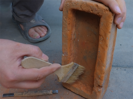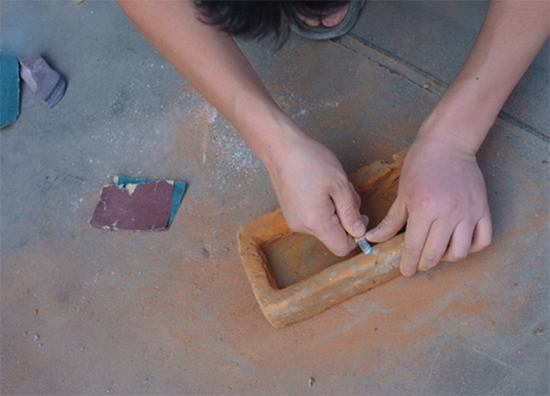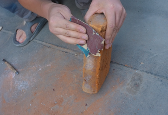 在凿出来空间之后,需要做的就是利用砂纸打磨这块板砖,这样才不会在使用的是过程伤到手了,而且也因为变得光滑而好看了很多。