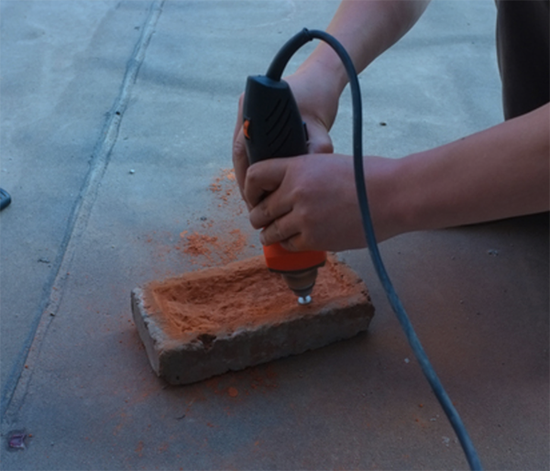 首先,你需要将板砖的一侧凿出一个空格或是说空层,这个过程很繁琐,需要很多工具,例如榔头、电钻等等,因为毕竟板砖的硬度还是很硬的。