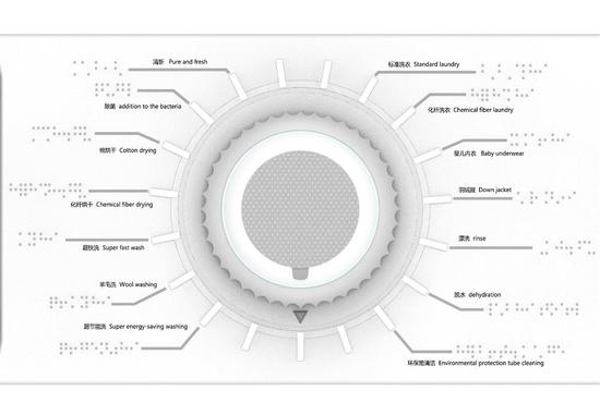 科技发展越来越快,帮助人们提高生活质量的产品也越来越多,可是我们会不会忽略了残疾人,因为身体原因他们可能不可以第一时间享受到平常人的产品?这就是这款专门为盲人设计的洗衣机控制面板的设计目的,让有眼疾的人有更好的洗衣体验。