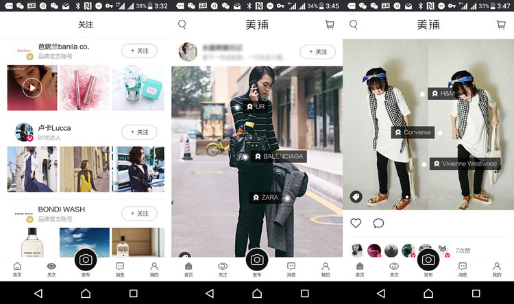 尽管我连那条裙子的购买方法都没找到,但美铺默认关注里的大量品牌官方账号和淘宝买家秀一样的刻意摆拍还是让我觉得这个App“太想卖东西”