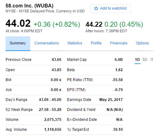 58同城股价