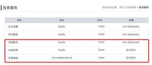 蓝巨投资官网显示,蓝巨投资是乐视汽车、乐视影业、乐视体育、乐视移动的投资方。此次传出的易到其中一个接盘者TO WIN Global也是蓝巨投资的投资对象。