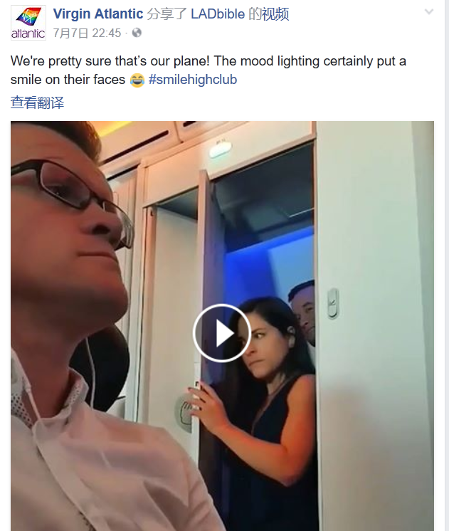 而维珍航空甚至转发了这段视频,并且加上了评论“肯定是我们的飞机,那情绪灯肯定对他们的好心情有所助益,看他们脸上的微笑。”