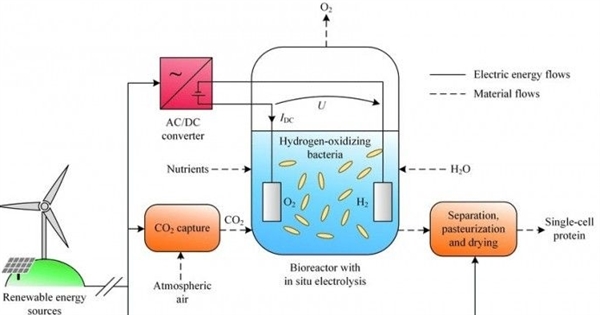 现在,芬兰国家技术研究中心和拉彭兰塔理工大学一起秀出了研究成果,将电接入装有水和微生物的生物反应器中,开始工作后,水电解为氢和氧,同时向反应器中注入二氧化碳。