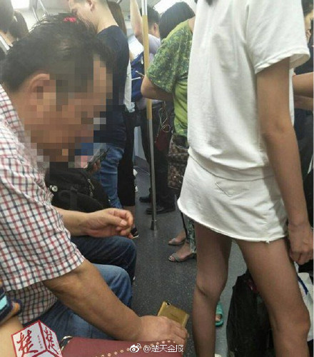 具体情况是这样的,有微博网友爆料称,在地铁三号线上,发现一名疑似偷拍女生裙底的猥琐男,并配了几张男子偷拍时的照片。从照片来看,这位猥琐大叔行为无耻下流,如果你认识这位斯文败类,请及时向公安局举报。