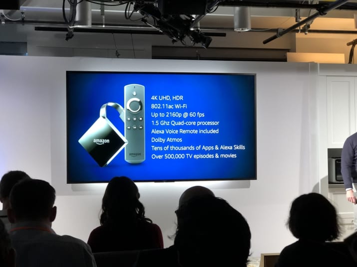 亚马逊还推出了一款新的Fire TV设备,可以插入电视机背面(使用HDMI)。它将支持4K内容、HDR视频和杜比Atmos音频支持。