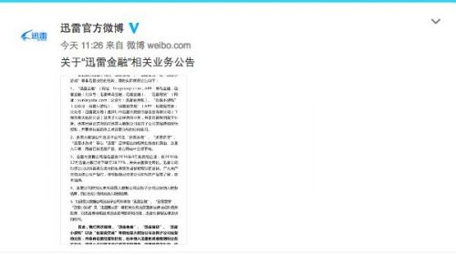 迅雷大数据公司及其子公司在“迅雷金融”、“迅雷易贷”、“迅雷小游戏”等以“迅雷”品牌冠名的相关业务宣传露出、流量入口等,目前已在迅雷产品、官方网站中全部下线。