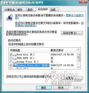 从开始菜单中找到“所有程序→附件→命令提示符”,右击选择“以管理员身份运行”,进入命令提示符后,手工输入“powercfg -h off”并按下回车键,执行后即可取消休眠,不需要注销或重启系统,就会发现系统分区根目录下的hiberfile.sys文件已经被自动删除,如果日后需要启用休眠,可以输入“powercfg -h on”再次启用。 2.关闭系统保护 Vista提供了名为“系统保护”的功能,其功能较Windows XP时代的“系统还原”更为强大,除了可以对系统进行还原之外,还可以使用以前版本的文件去还原被意外修改、删除或损坏的文件,即所谓的“卷影副本”,当然这些文件所在的磁盘必须已经启用“系统保护”并创建了还原点。 默认设置下,Vista会每隔24小时创建一次还原点,而且在安装应用程序和驱动程序时,也会自动触发还原点的创建,系统为这个功能所保留的磁盘空间高达15%,这个数字是相当大的。其实,我们可以根据自己的需要,有选择性地关闭某些磁盘的系统保护(图2),还可以在命令提示符环境下键入类似于“vssadmin Resize ShadowStorage /For=E: /On=E: /MaxSize=500MB”的命令重新调整最大卷影副本存储空间的大小。这样便能节省出一部分空间。注意这里的“MaxSize”之值≥300MB,否则将不会限制卷影副本所占用的磁盘空间。