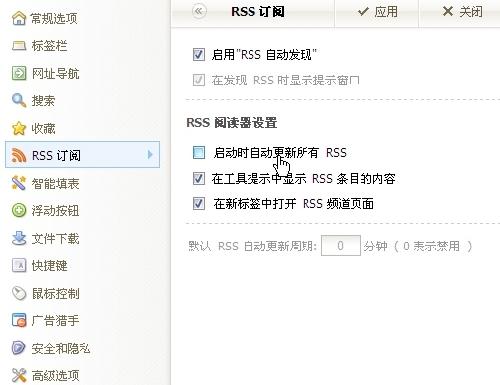 图10 关闭RSS自动更新功能提高傲游启动速度