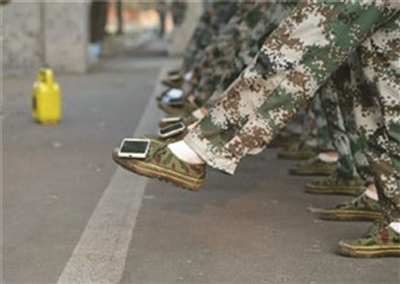 “脚尖下压,脚掌与地面平行,脚掌离地面约25公分,大家注意,你们的手机都在脚背上,动作不标准就会掉下来哦!”昨天上午,新生教官祁康正在队伍里指导同学们分解踢正步的姿势。他解释,不少学生隔几分钟就要偷偷看一下手机,教官们逐一去抓效率低,所以才“出此下策”,让学生们统一拿出手机,将其作为一件辅助训练的工具。