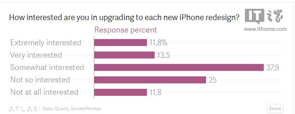根据Quartz发起的一项调查,样本数量为525份,iPhone7新外观设计占据用户升级购买因素的25%。