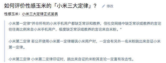 早年职场人对QQ邮箱的种族歧视现在转移到了智能手机上,微博大V@性感玉米 甚至总结了一个“小米三大定律”: