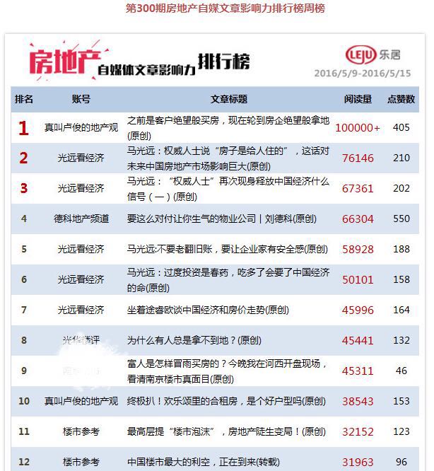 再对比下点赞数,似乎大家想要的答案,这张由房地产自媒体联盟乐居新闻网提供的图已经说了不少。