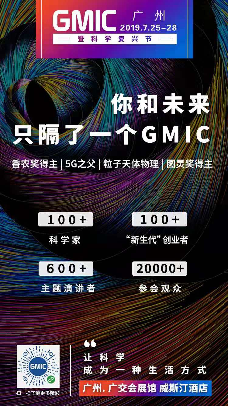 又有一大波重磅嘉宾集结GMIC广州2019暨科学复兴节