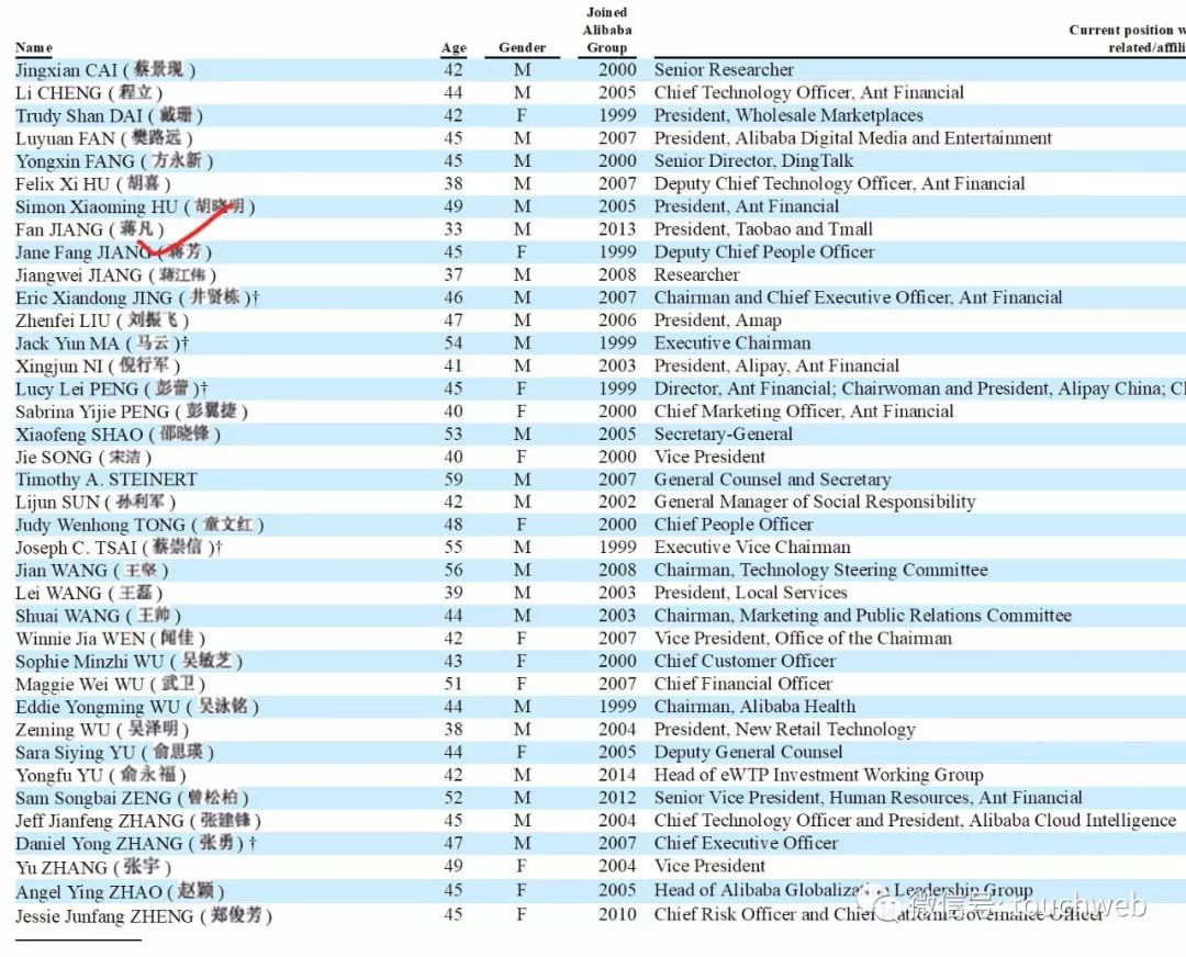 截至2019年6月,阿里38位合伙人名单