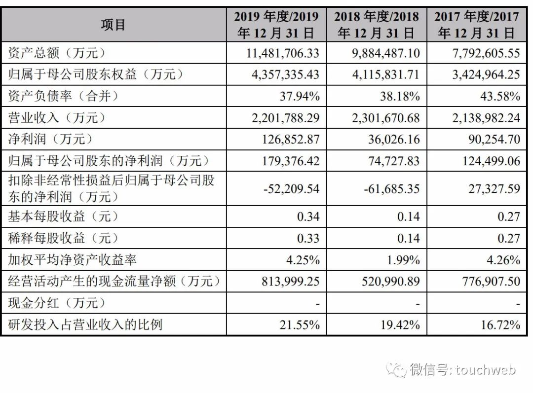 报告期内,公司研发投入分别为35.76亿元、44.7亿元及47.45亿元,占营业收入的比例分别为16.72%、19.42%及21.55%。
