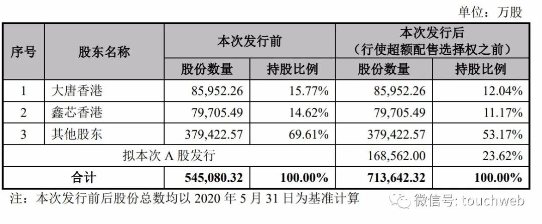 此次发行价后,大唐香港持股降至12.04%,鑫芯香港持股降至11.17%。