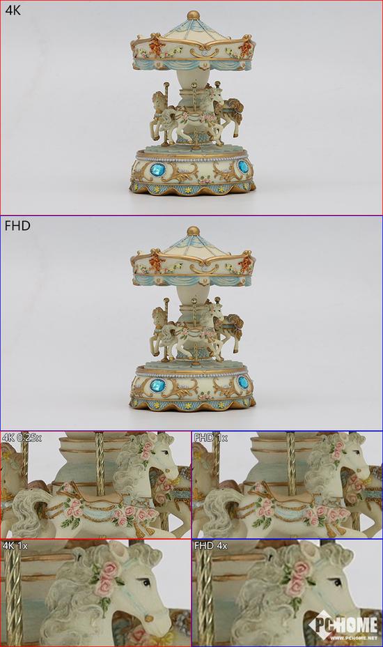 但其实EOS R不仅是4K规格码流高,在全高清下依然有很高的码流。按照分辨率全高清是4K的1/4,那么换算下来可能达到120Mbps的码流,而这个数值是目前主流的4K视频码流。从官方的规格表来看, 全高清(59.94p/50p)/ALL-I拥有约180Mbps的码流,全高清(29.97p/25p/24p/23.98p)/ALL-I拥有约90Mbps的码流,上图对比采用的是4K 25p和FHD 25p(考虑画面对比需要,FHD采用了裁切模式拍摄),实际测得的FHD码流超过了100Mbps,虽然佳能EOS R的4K细节呈现很出色,但是全高清也不遑多让。
