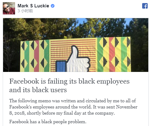 黑人Mark Luckie表示,Facebook的黑人雇员人数并不代表其黑人用户群。