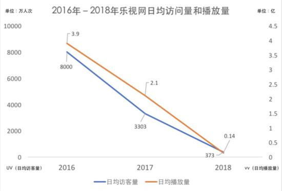 乐视视频曾在影视版权库中拥有5万余部电影和10万部电视剧版权,一度占有视频业大半以上的版权内容。2016年时,网站日均访问量超8000万,到2018年,仅剩373万。网站的日均播放量更是从3.9亿跌落只剩1千多万。