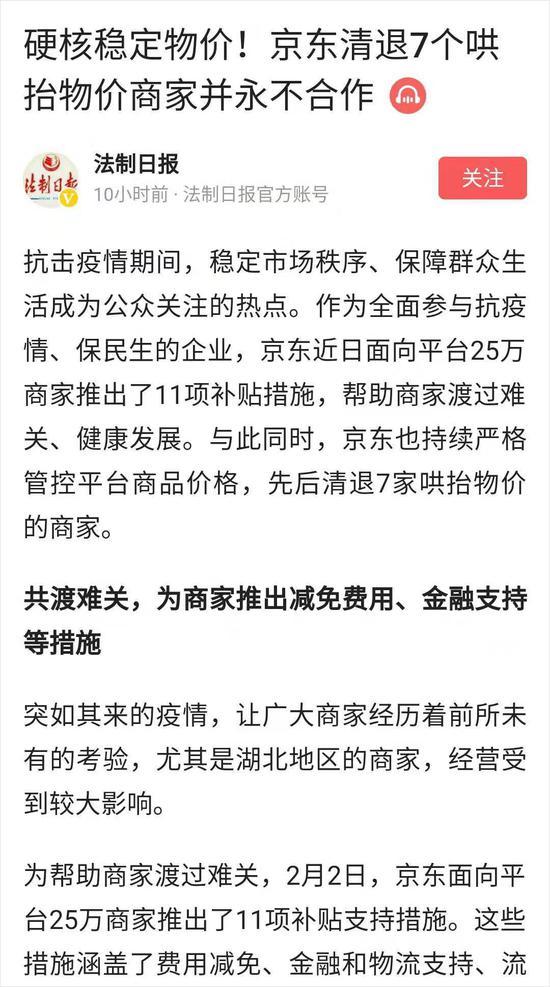 京东零售已经宣布面向平台商家进行金融、物流、流量、技术支持等11项补贴政策,预计投入金额将超过1亿元,特别是对湖北的商家提供了重点支持;接下来,京东零售还将在确保商品供应、稳定商品价格、扶持中小企业等方面继续出台系列保障政策并持续进行大力度投入。