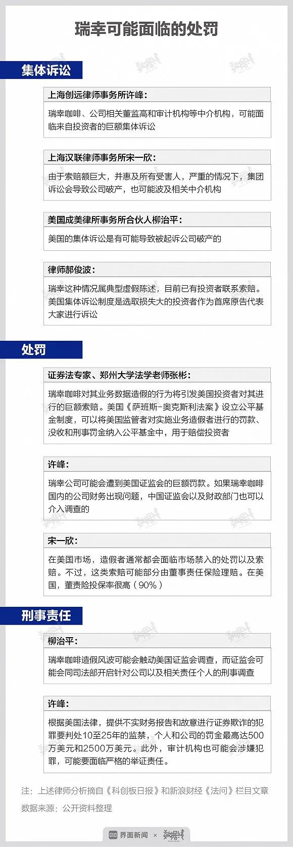 此前,部分律师曾分析称瑞幸咖啡或将面临包括集体诉讼、罚款等多重处罚。