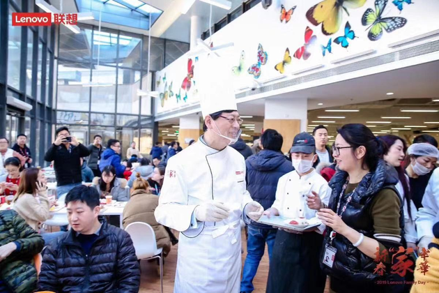新浪科技讯 1月28日午间消息,联想集团董事长兼CEO杨元庆今日午间现身联想食堂,身穿厨师工作服,为员工端盘子打菜。据联想员工表示,今日小年,除老板送鱼外,公司食堂还全员免费。