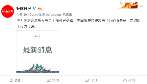 华为在深圳总部发布会上向外界透露,美国政府涉嫌攻击华为的服务器,窃取邮件和源代码。