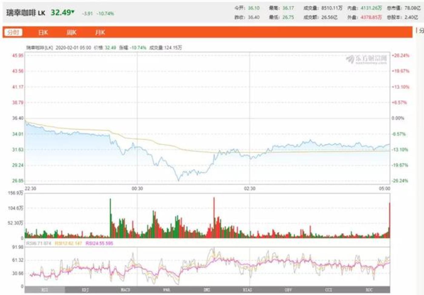 受浑水报告影响,瑞幸咖啡最新收盘报32.49美元,跌幅10.74%。对此,瑞幸咖啡回应称,以周一SEC公告为准。
