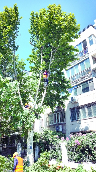 考虑到修剪树木会对楼内其他住户产生影响,抢修队的工作人员逐一征求了其他住户的意见。在这一过程中,一位住户提出,“临街树木顶端收窄,对自家通风影响不大,在夏季还可以起到一定的防晒作用,希望修剪过程中不要剪得过多。”应急抢修队负责人白洁告诉记者,在确定修剪方案里,他们针对居民的不同需求进行综合考量。最终,队员保留了临街树木顶端枝叶,着重对树木中间部分的枝叶进行修剪和打薄。