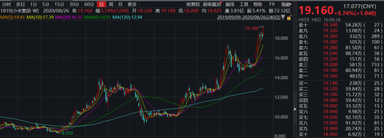两周前,小米集团(1810.HK)被纳入恒生指数成分股,占2.59%权重,9月7日将正式调入。本月以来,小米股价总体呈现上涨态势,月初至今累计已上涨近30%。截至今日收盘,小米报收每股19.16港元,涨5.74%,创下近两年新高,目前市值为4619亿港元。