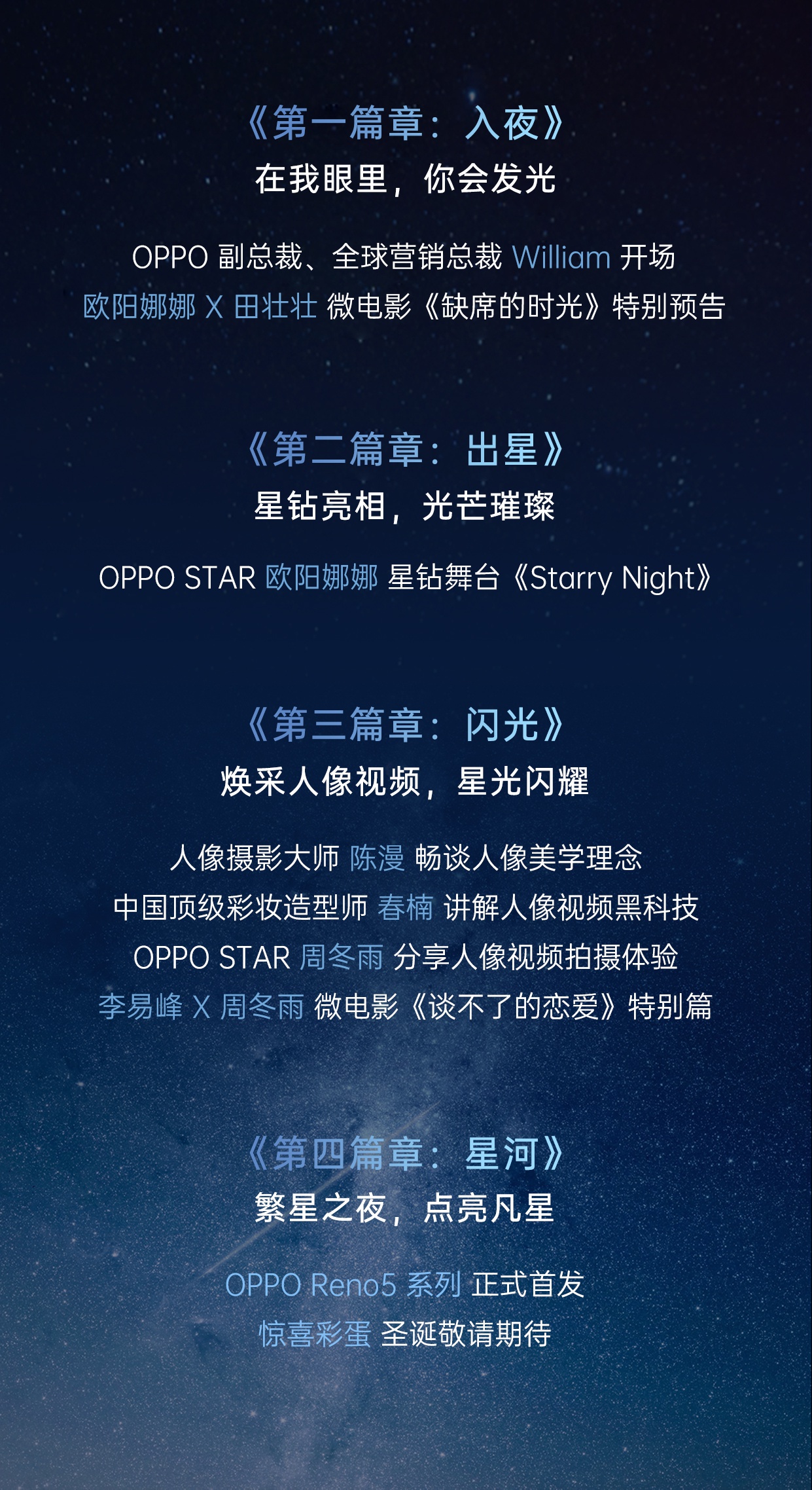 OPPO Reno5系列发布,一场汇集繁星,为用户呈现新品惊艳外观、人像视频功能卖点的新品发布大秀